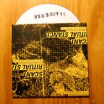 Next up of course we have the Ritual Stance track which is entitled “The Elegance Of Her Leather”, and this come in at spot on the forty minute mark. The ‘wall’ is built around a tight & airless mixture of small jittering ‘n’ juddering tones which are weaved into a dense mat of sound. Buried underneath the mat of sound is this slow roaming ‘n’ repeating bass drone element, and this rumbles out in a eerier semi harmonic manner beneath the ‘wall’. The small jittering ‘n’ juddering elements remain fixed yet feasting in their feel through-out, with the drone element giving a sombre/ ominous yet oddly pleasing zoned out vibe to the track. Again this is a very rewarding & moorish bit of ‘wall-making’ from the Ritual Stance project.