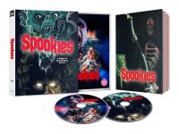 Ahh, Spookies, the mother of all crazed 'n' campy 1980’s horror films. It’s a blend of folk-stuck-in-a-creepy-house caper, overpopulated creature feature and monster fed slasher- with loads of rubbery effects, red slashing gore, and a plot that barely makes sense or logic. Here from 101 Films is the UK Blu Ray release of the film- with the two-disc set taking in a bunch of extras including two feature-length docs- one about Spookies troubled production, and the other about cult British nasty video label Vipco.