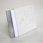 It’s also worth giving the releases packaging a mention too, as it’s rather special & nicely adds another edge to the whole thing. The set takes in a cd in a double case slip case and a rather plush looking & arty sixty page booklet- the colour printed booklet features laser stencilled wrap-around cover conceptualized and designed by Steinbrüchel featuring photographs from Taylor Deupree and an essay by Lawrence English. The booklet and cd wallet are housed in a slipcase printed inside and out in black and white on contrasting paper stocks