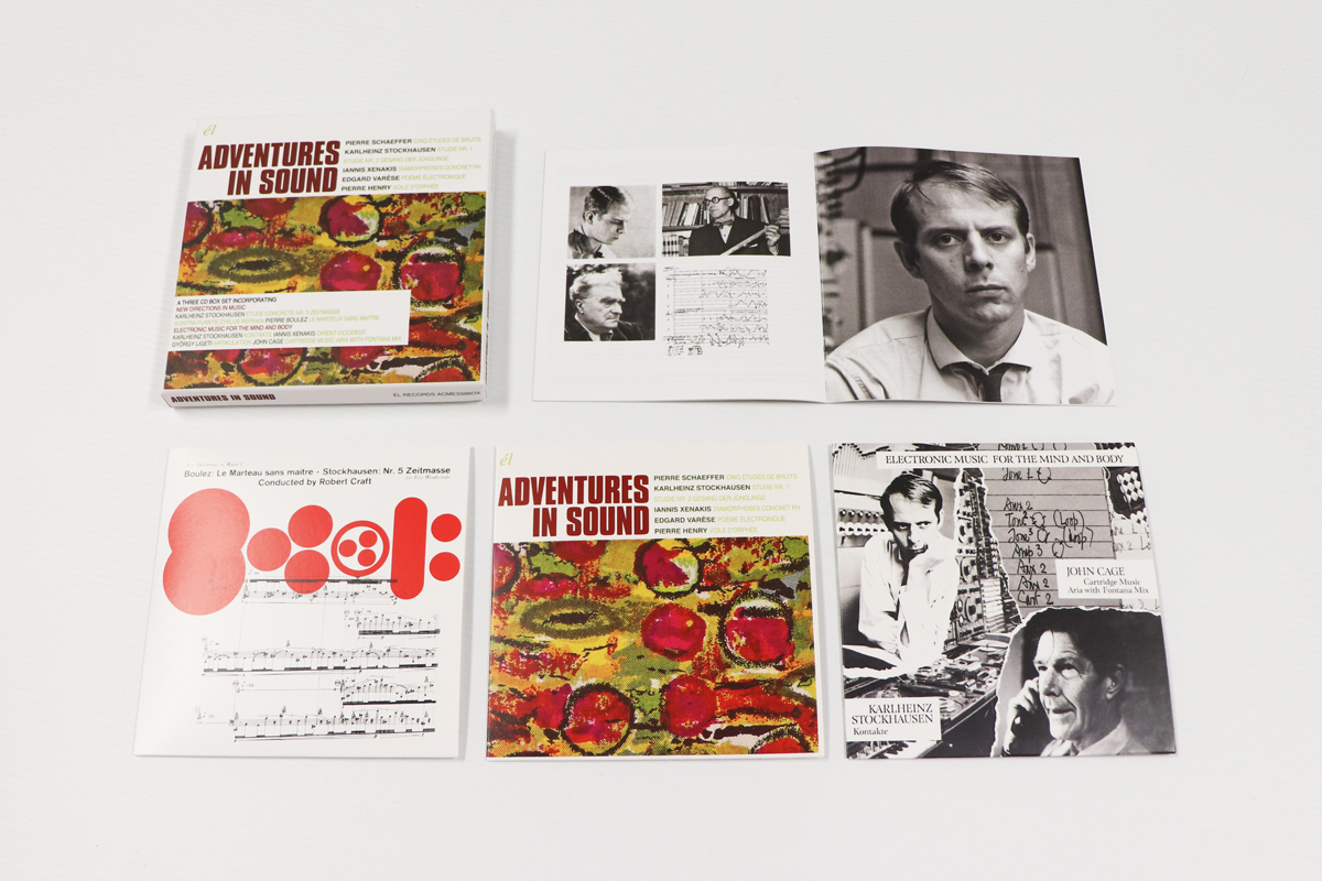 The three-CDs comes in white, green, red & black colour scheme flip box packaging- each of the discs comes it's own cardboard slip sleeve. There’s also a twenty-three-page inlay booklet- taking in various write-ups about Stockhausen, and the other composers featured here, along with a fair selection of black & white photos.