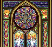 The CD comes presented in a most colourful and bright digipak. This features an illustration of a boy with a catapult firing up into a multi-colour stained glass window full of atom drawings. Within the gatefold, the various shards of said window shattered and spread out. It’s by Poxodd, who has done artwork for The Residents, Renaldo & The Loaf, etc. All in all, a nice impactful and eye-catching bit of packaging.