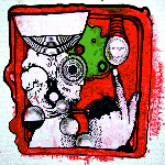 The feeling, vibe or theme that starts the album and reappears later is very desert based in my mind. Though a very strange desert, one with muilt coloured sands and camels walking along the sky and strange arabic men with huge beards trailing behind them as they give audio swimming lesson backwards. Yes this is very odd stuff indeed, Track one drags us into this strange ethnic world with wonky snake dance guitar and ethnic percussion. Track two takes us deeper into the desert where we really seem to start to loose are mind as we meet all manner of manic chanting and strange audio shenanigans, before dropping into a very odd nightmare world of bent Bernard Herrmann string work, via strange building drone tones. Next it goes into a little surreal ballet dance practice, with clunky piano and all manner of bizarre calls and sounds over the top. It all ends off with a strange ritual air via distorted instrumentation and what almost sounds like typewriter key hits .Track three seems to ushers us into a black and white scene maybe something from a odd early Jess Franco film, where strange macabre female dances out a jerky and plainly disturbing death dance. As ragged violin hover and swirl in horrific air ,female voices chant like spirits calling you over the other side and goosepimply organ weaves on like the reaper seeking out victims. So as you can see you have to expected anything and everything to happen with in these audio confines. I wont detail any more as Volcano the Bear stuff is best tripped into solo and with out set vision.
