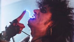 During the 1980s,a fair few films locked into heavy metal themes/ concepts, be they horror, comedies, or documentaries- one of the most successful/memorable of these was Trick Or Treat. The mid-80s film blended elements of revenge-focused supernatural horror, high school angst drama, with light touches of comedy & satire. Its plot is fairly simplistic- shock rocker Sammi Curr( Tony Fields)- a Alice Cooper/ Blackie Lawless crossbreed- dies in a fire, but manages to come back to electrified life via raven-haired/bullied teen Eddie, played by Marc Price, who is most known for his role in US Sitcom Family Ties. Here from Synapse Films is – either a UHD, Blu-ray, or DVD release- taking in a new 4k scan, new audio commentary, a lengthy new doc, and a few other things.