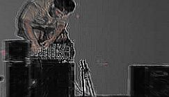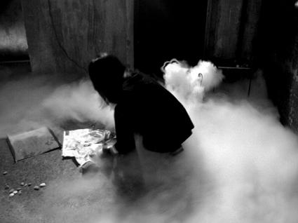 Kuwayama Kiyoharu, also known as Lethe, has an impressive discography of non-music dating back to the late 90's, although this new release, "Dry Ice on Steel Tables", is my first time listening to his material. The release is a single track (actually recorded in 2003), which portrays the title of the album quite directly: it's an unedited and unhurried 43 minute improvisation, in which Kiyoharu coaxes as many different contact sounds as possible from the two materials, resulting in what often sounds like a sort of metalized whalesong.