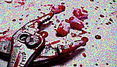 The wonderfully entitled ‘Dental Butchery (Endodontics Madness)’ finds Serbian based Dead Body Collection(aka Dr Alex who’s also in the excellent Harsh Noise & HNW two piece C. T. D .) offering up two lengthy twenty five minute slices of thick and rewarding HNW matter with a distinctive clinical yet sadistic air to them; like the sonic equivalent of psychotic dentist calmly and methodically removing your teeth at random as your mouth over fills with blood, stringing gum flesh and severed nerve endings.