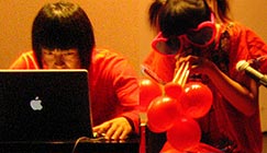 The international duo called 10 was formed by Itta from South-Korea and Marqido from Japan, both also active as solo-artists. Marqido on his laptop and Itta on assorted instruments, toys and vocals. Laptopmusic often ends up a bit boring to watch but the extravagant looks of Itta and the use of the colours red and black makes them appear different compared to the competition.